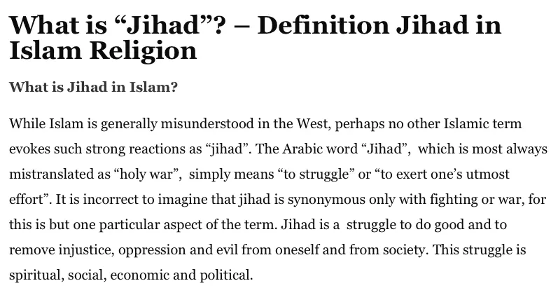 But with "Jihad", I would agree there are multiple meanings and the rhetoric is pretty inflammatory, so hard to tell what any one user means.