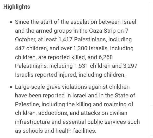 UNICEF reports that this total is likely to rise as Israel strikes Gaza around the clock.