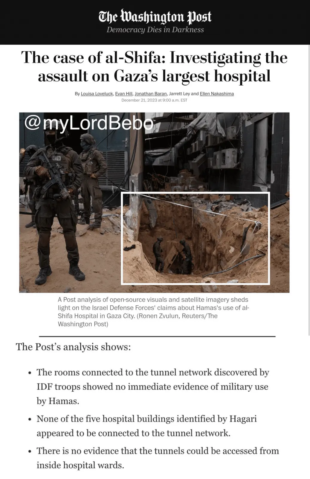 But the evidence presented by the Israeli government falls short of showing that Hamas had been using the hospital as a command and control center, according to a Washington Post analysis of open-source visuals, satellite imagery and all of the publicly released IDF materials.