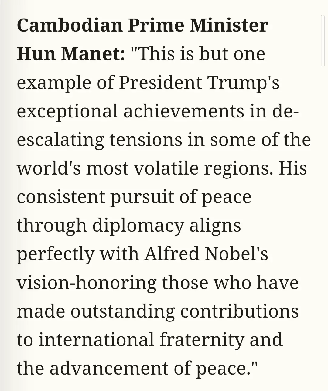 The reward isn't the prize, it's the release of the Israeli Hostages, the end of the death and destruction in Gaza. The cessation of the hostilities between Russia and Ukraine, and saving the lives on both sides.