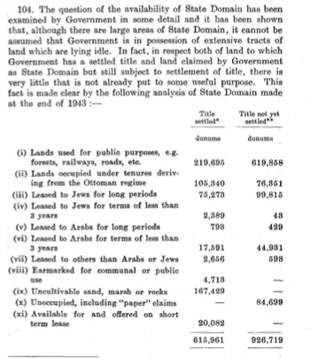 "164. The Arab population, despite the strenuous efforts of Jews to acquire land in Palestine, at present remains in possession of approximately 85 per cent of the land."