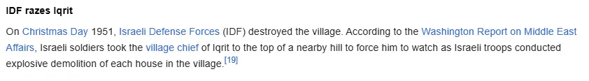Here's information about the destruction and ethnic cleansing of a small Christian village in 1948, named "Iqrit" also sometimes called "Acref".