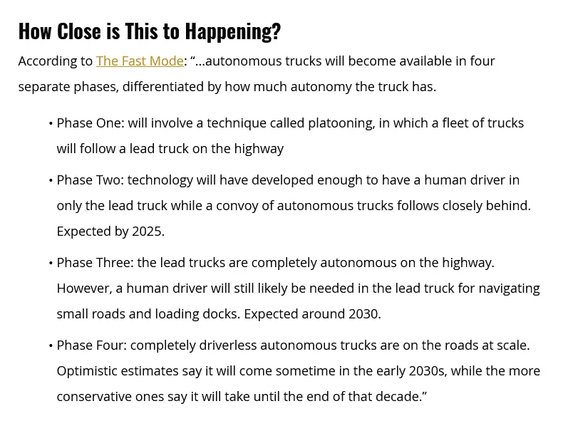 And yet? Once the OTR semis do become truly able to be driver-less? This is something we may have to grapple with.