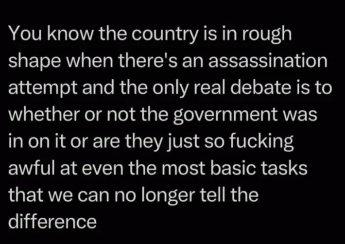 Its become clear that this was an act of Joe Biden and his illicit government, the only people in opposition to such are all of the fascist democrats lamenting that the killer missed his intended target, the evidence is mounting, and its impossible to spin it away, they are caught dead to rights,