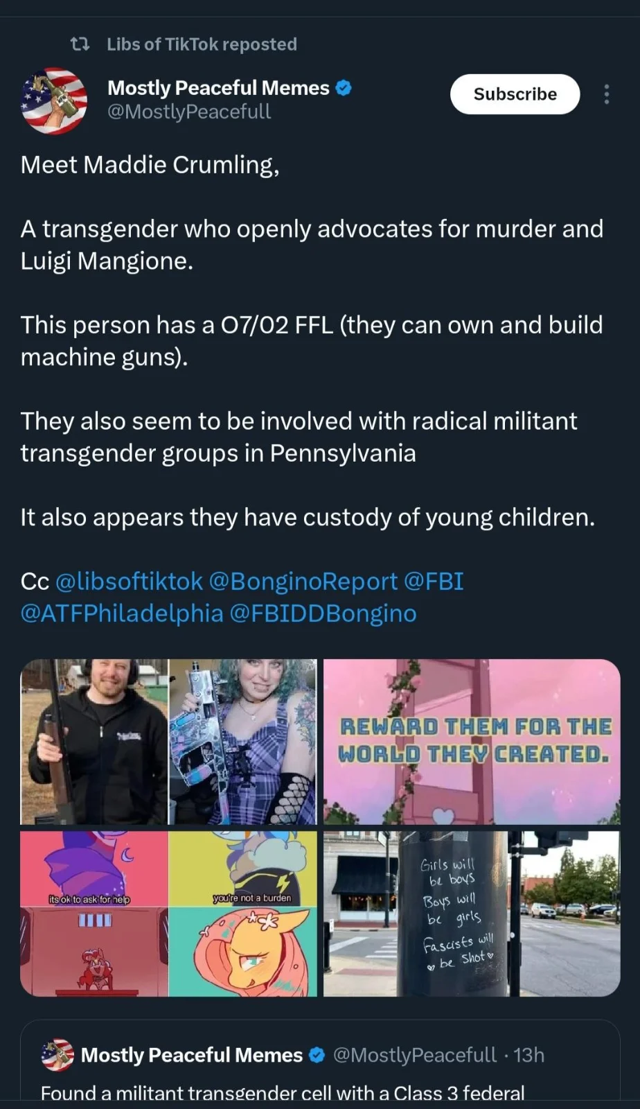 7 trans mass shooters taken as rate(per capita) of the trans cohort make them the most violent cohort in America. The point is they are mentally ill to begin with and are easily radicalized by hate speech from democrats.Okay, but then you go into a laundry list of things that had...nothing to do with a disgruntled fanboi shooting Kirk.