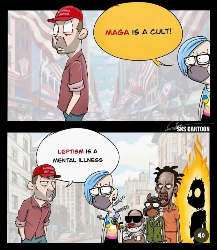 You just described the left perfectly, congratulations!MAGA is surely a cult, a national sociopathic infection of a minority of the population.