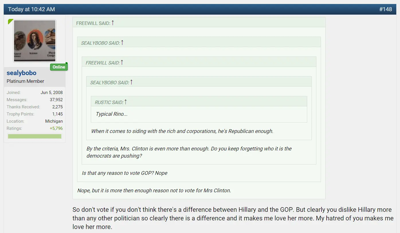 So don't vote if you don't think there's a difference between Hillary and the GOP. But clearly you dislike Hillary more than any other politician so clearly there is a difference and it makes me love her more.