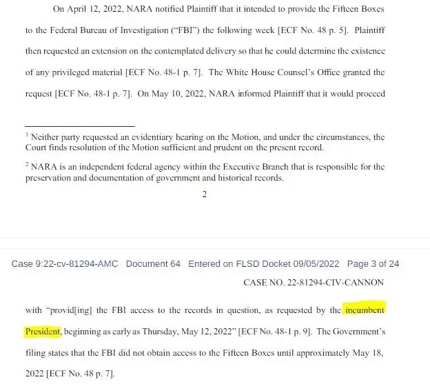 Judge Cannonâs ruling revealed on pages 2-3 that Joe Biden ordered the FBI access to the Mar-a-Lago documents and Trumpâs belongings.