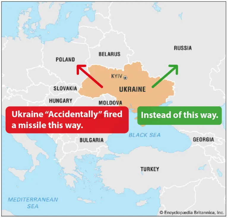 It was an air defence missile, genius. At this time, Russian missiles were heading to Lviv and Kovel. Can you locate these cities with Google Maps or should I help you?Weren’t the usual suspects calling us “Putin lovers” for suggesting that the US “military intelligence“ was lying its ass off when they claimed it came from the Russians?