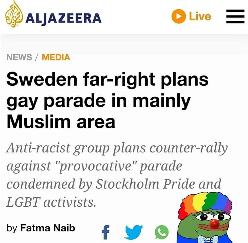 That's some funny shit. Sweden is gone, just mark it as losses... clown world it is. The cuckery of that place is out of the charts.
