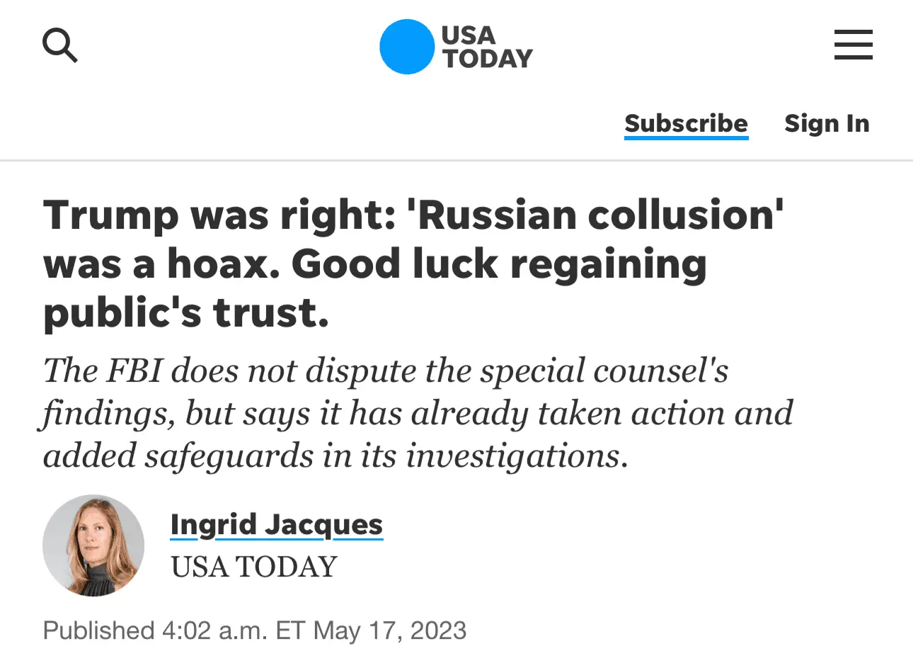 Except his report has been bogus since the day he wrote it.Assassinating Mueller's character doesn't change a single fact revealed in his report.