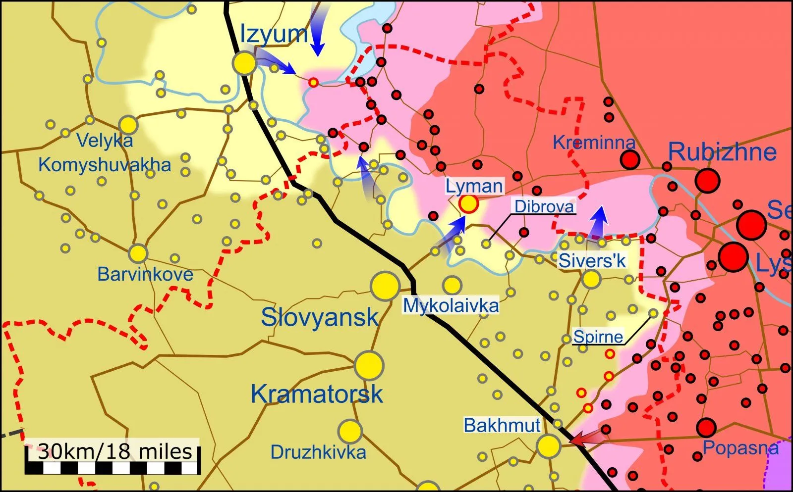 The idea that Russia abandoned Izium, all the land west of the Oskil and up to the Russian border, and the entire supply line to the northern Donbas forces just to reinforce the attempt to advance in Bakhmut is pretty imaginative, to put it mildly.