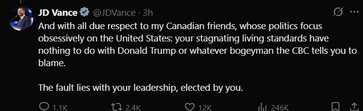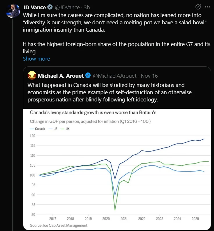 He is now calling out Canadian immigration issues. I think his thesis goes beyond this though and it surely is echoed in many corners of the U.S.