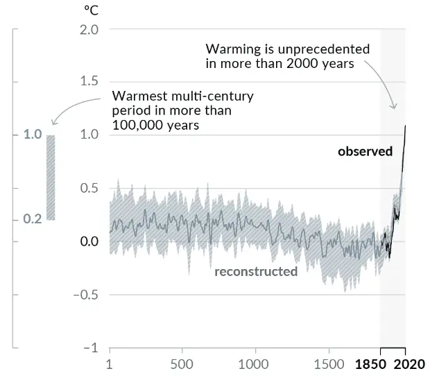 They estimate that temperatures averaged somewhere between 0.2 degrees Celsius and 1 degree Celsius (0.36 to 1.8 degrees Fahrenheit) warmer than they were from 1850-1900.