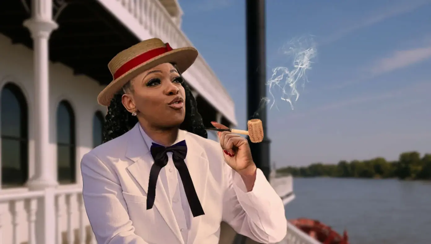 NATCHEZ, MS — Congresswoman Jasmine Crockett was seen smoking a corncob pipe and playing a ditty on her banjo as she drifted down the mighty Mississippi River on her way to purchase a fresh shipment of Mexican slaves.