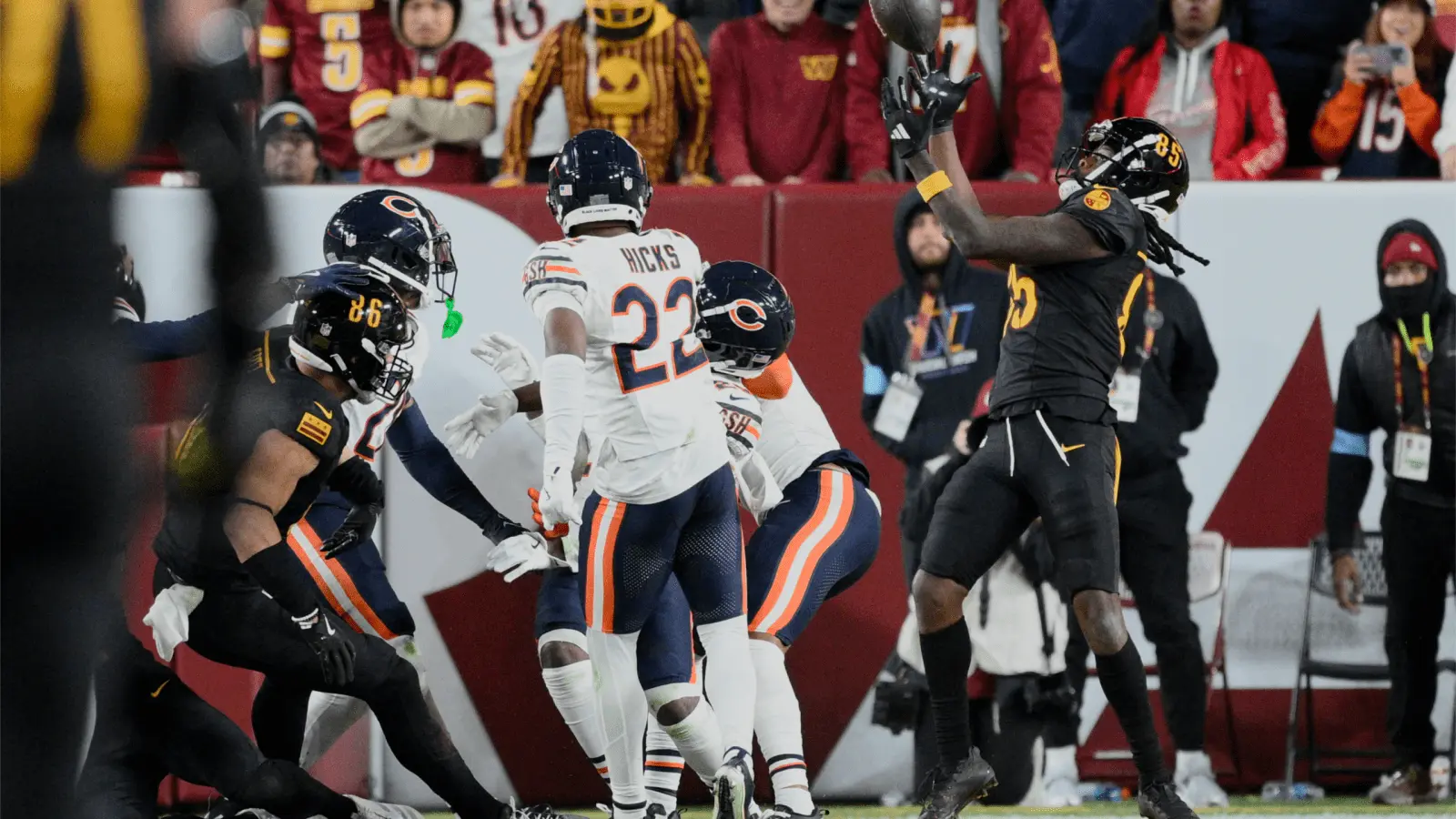 He scrambled around for 10 seconds and launched a mortar that was tipped by the Bears and dropped into the hands of the Commanders. The kid is magic!