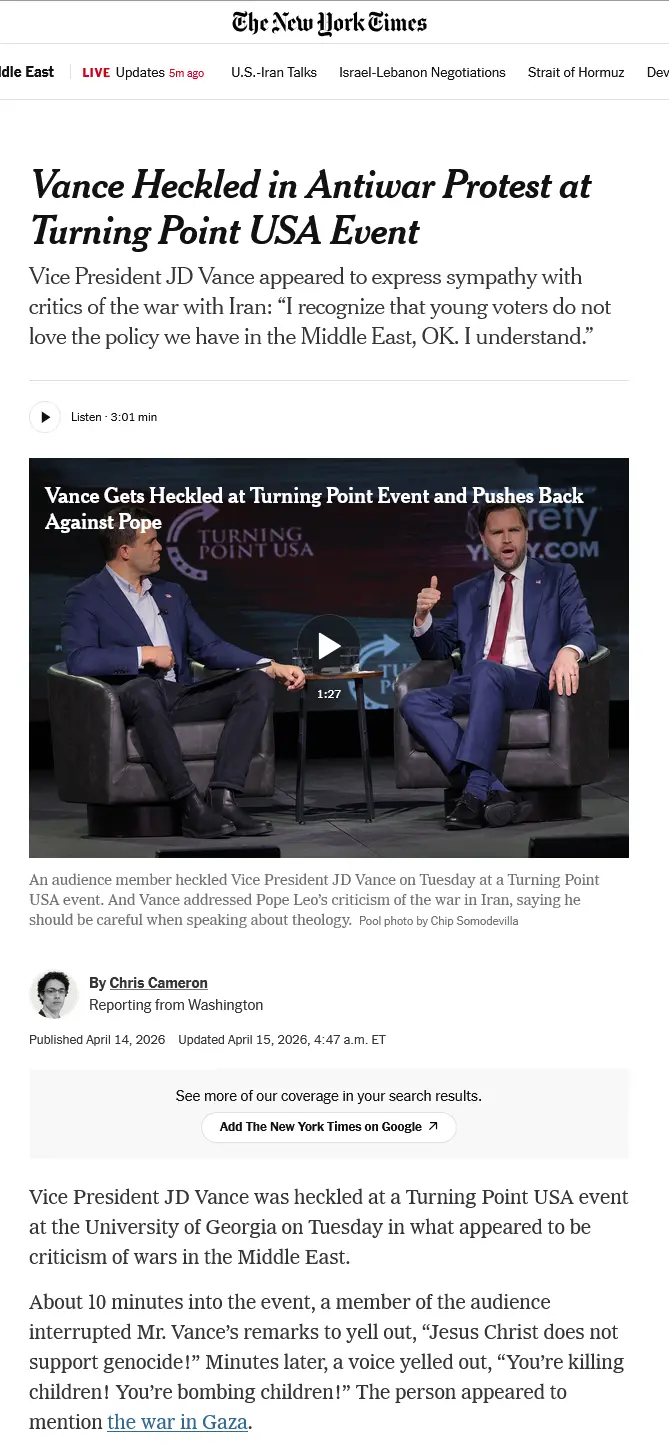 At the recent, sparsely attended, Turning Points USA event here in Georgia, JD "No Chin" Vance found himself groveling before the youngsters of the Republican Party