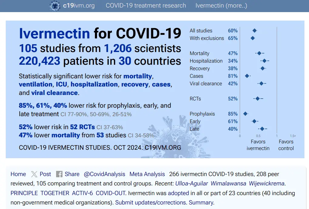 Ivermectin for COVID-19: real-time analysis of 293 studies