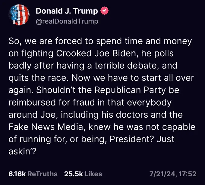 "I know nothing about Project 2025," Trump posted on his social media website, Truth Social. "I have no idea who is behind it.