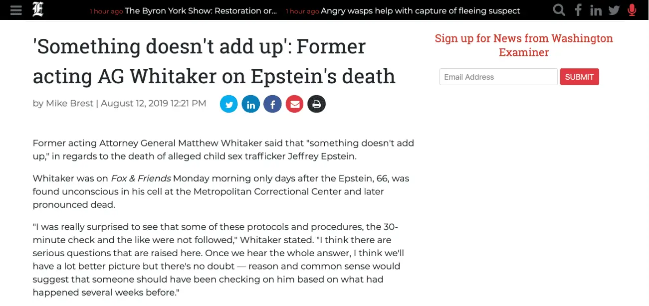 'Something doesn't add up': Former acting AG Whitaker on Epstein's death