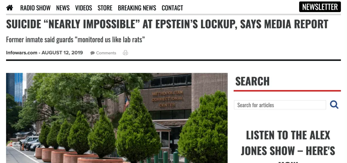 Suicide “Nearly Impossible” at Epstein’s Lockup, Says Media Report