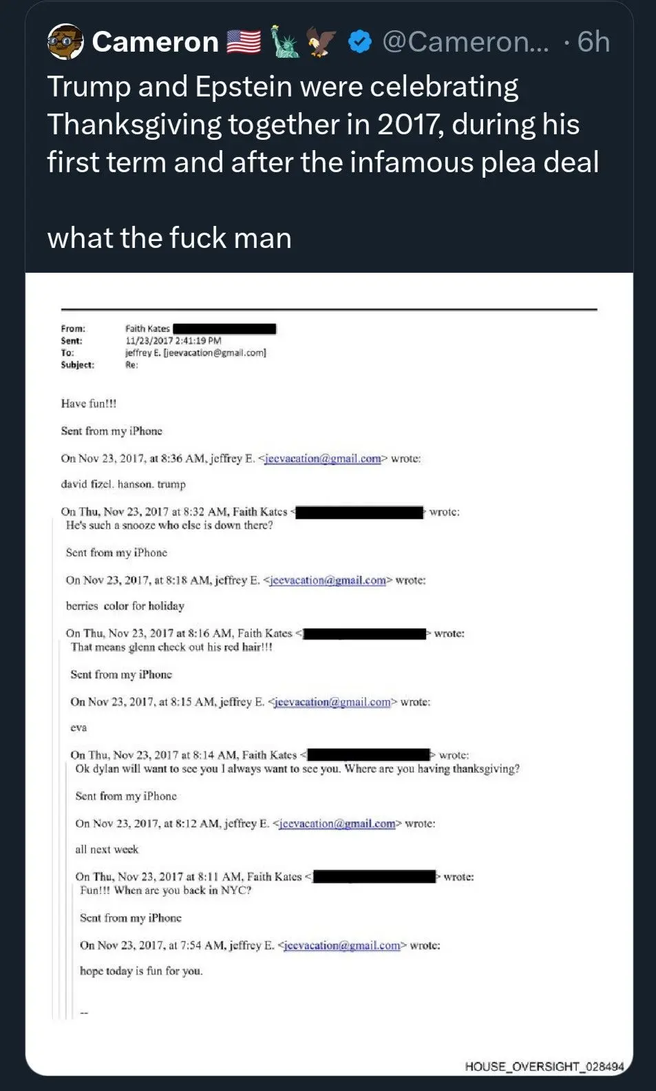 Other emails show that Donald Trump and Jeffrey Epstein may have SPENT THANKSGIVING TOGETHER in 2017.