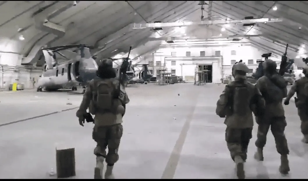 #Taliban fighters enter a hangar in #KabulAirport and examine #chinook helicopters after #US leaves #Afghanistan. pic.twitter.com/eFP6wN44lS
