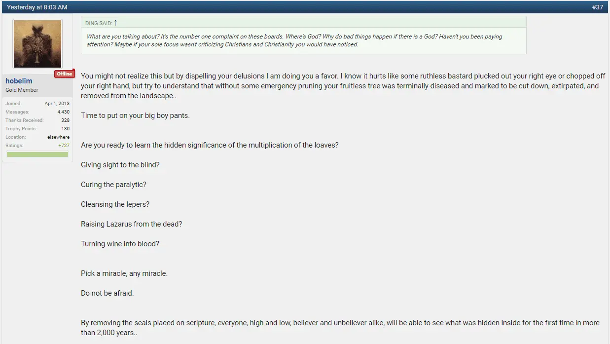 You can try to continue to believe in the garbage that you were spoon fed since birth about supernatural demonstrations of divine power over reality but you will never be able to unsee what I have shown you.
