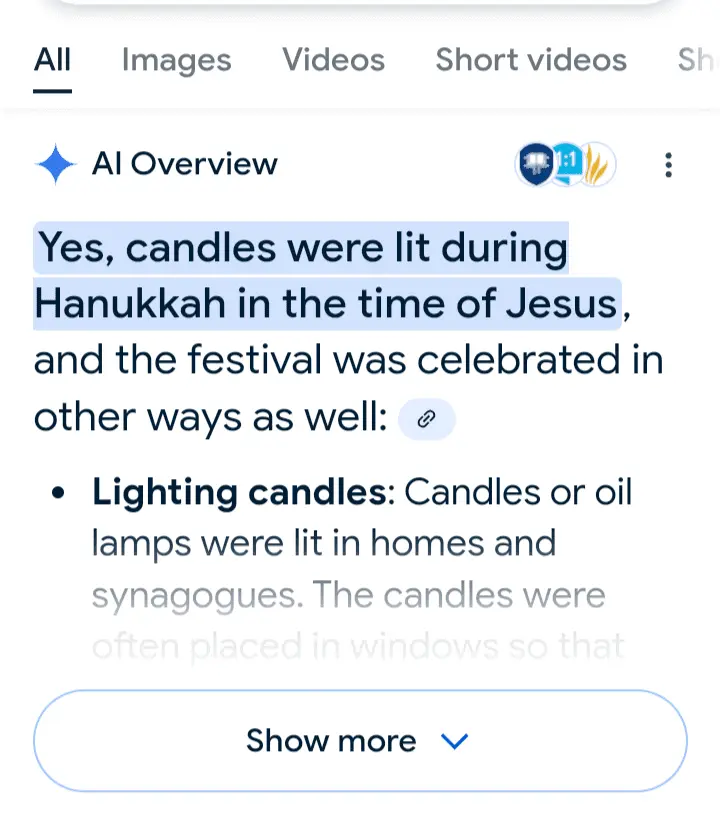 There's actually much more to be said about this, but I think others can do a better job explaining it than I can. So I'll try to find a video or article about the connection between Jesus (Yeshua) and Hanukkah.