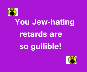 You Jew-hating retards are so gullible.Mental asylums and prisons are filled with people who think like you.