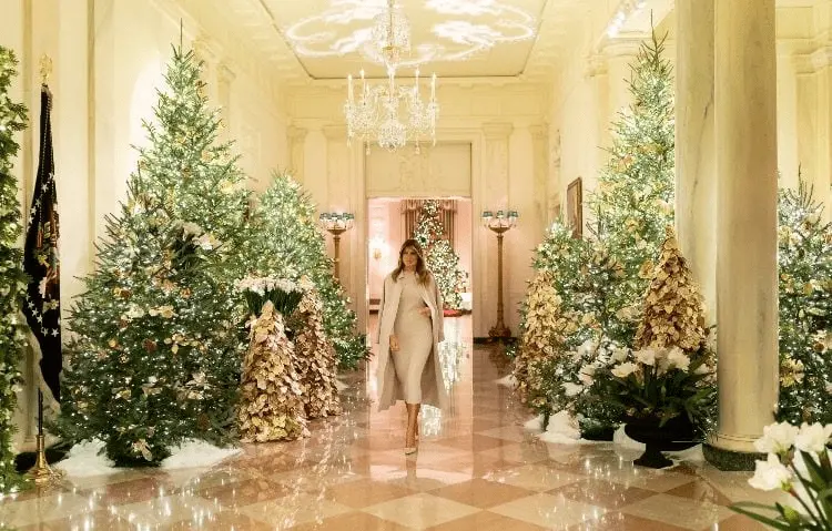 Yes, you read that right. She has Covid cell looking ornaments set up. This is as trashy as it gets. It's all cluttered. The Trump's had eloquent Christmas decorations and didn't over do it. As for the floating ice cream cones, we all know who was in mind for that.