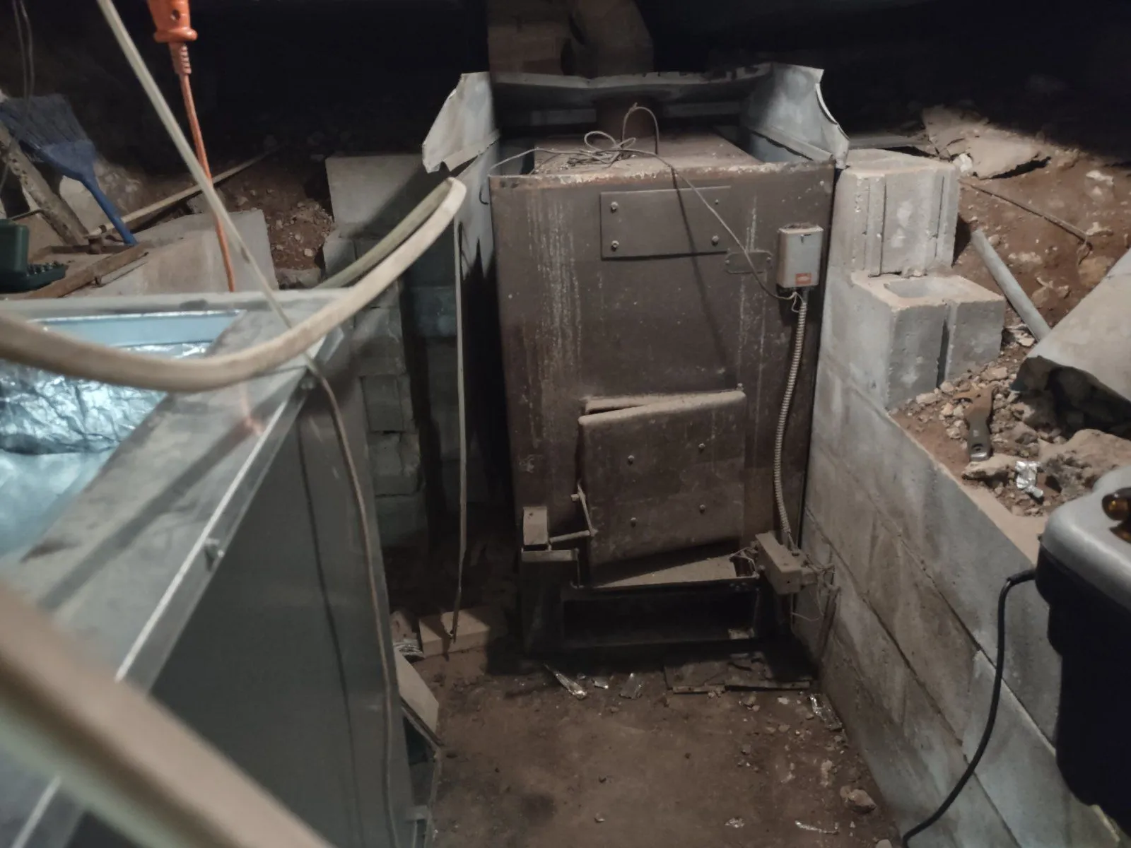 LOL.....I had to hack out a place for a oil furnace and hot water heater in my grandparents root cellar back in the 70s.....Instead of blocking it my granddad shored it up with cedar logs.