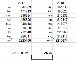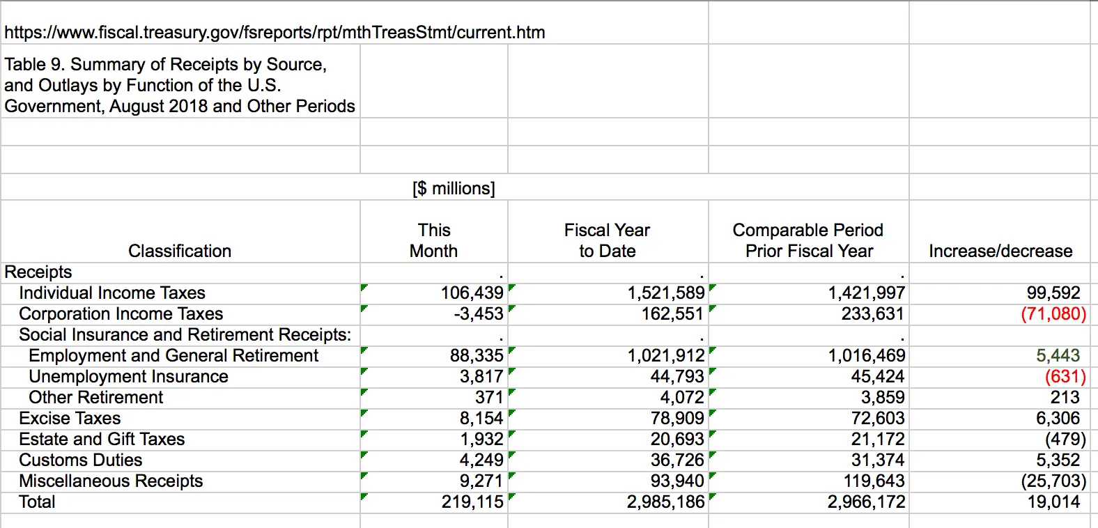 I know that math is too hard for you, so let me help you out. The total from Jan-Aug of 2017 is larger than the number from Jan-Aug 2018 by an amount of $9,726,000,000. That means that revenue went down after the Trump tax cuts.