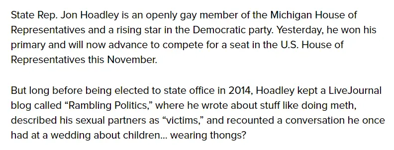 Exclusive | Michigan Democratic rising star Rep. Jon Hoadley blogged about drug use and sex