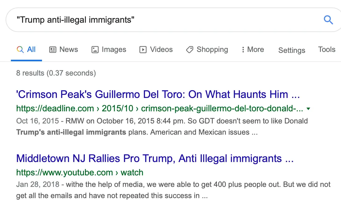 For example "Trump anti-immigrant" results: 96,000! But "Trump anti-illegal immigrants"? 8! Results!
