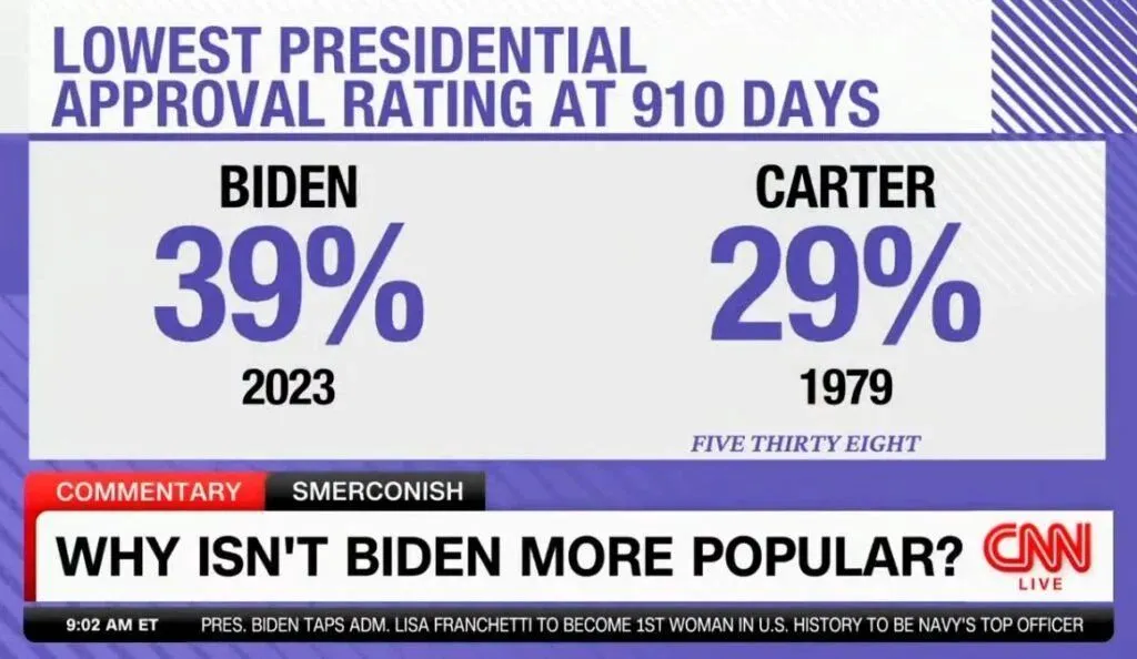 Jimmy Carter's approval rating was 29% at 910 days into his presidency, but Joe's giving him a run for his money.