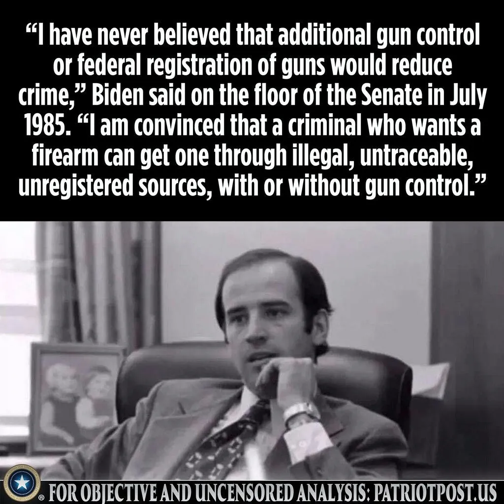 He used to be in favor of 2A rights & knew gun bans won't stop the bad guys. He still knows this but he's got orders to try to take our guns so they can have their reset.