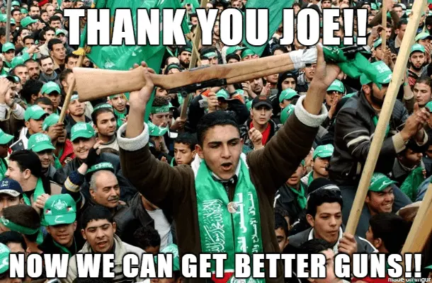 But if we send the Palestinians bottled water, Hamas is only going to use that water to attack Israel.That and humanitarian aid to displaced Palestinians