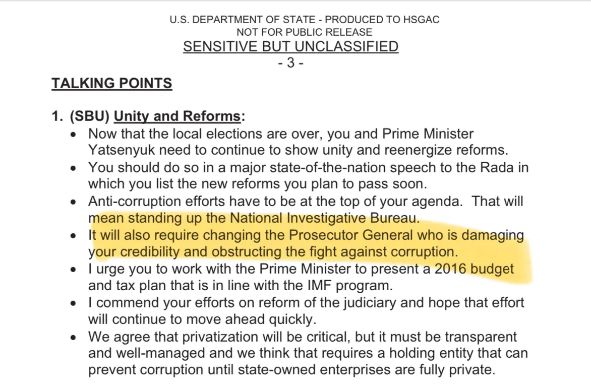 Odd that Ms. Yovanovitch didn't provide any documented evidence of this "official U.S. policy" In fact, all of the official US documents showing US policy said to give the Ukrainians the billion dollars without firing ShokinFrom the article: