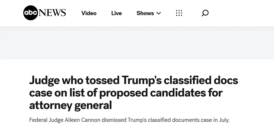 Judge Aileen Cannon on short list to be Attorney General if Trump wins.