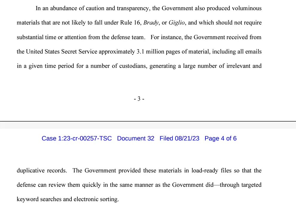 So the prosecution requested emails from the Secret Service. Do you think the IT Support for the Secret Services printed to paper 3.1 million documents, handed the boxes to the the prosecution and then the prosecution scanned them in?