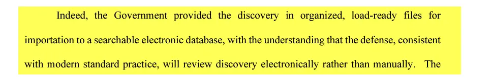 Then there is this. The prosecution informed the courts that the documents are already in electronic format, available in standard database format, and is comletely searchable.