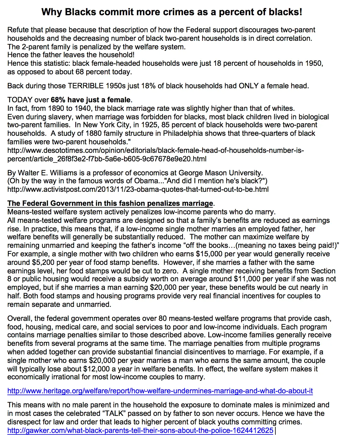 Make the argument that blacks have a 2.5x better chance of getting shot than whites, but also commit 2.5x more crimes than whites... and you have a valid argument that we can discuss. Don't use false comparisons by saying more whites get shot than blacks when there are 160 million more whites in this country than blacks. That is not smart nor is it honest.