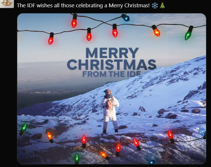 Are they wishing Christians a Merry Christmas? Israelis are. Now some can say, "it's a PR move", and I say "I don't know and I don't care." They wish Christians publicly without fear.