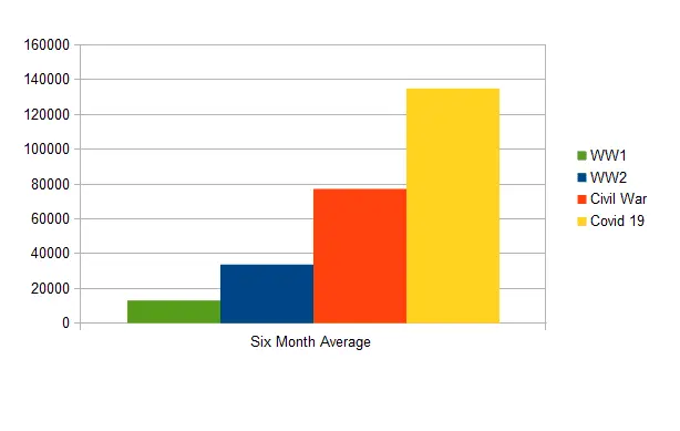 Seems the six month death toll for Covid 19 is higher than WW1, WW2, and the Civil War. Only an idiot would claim that isn't enough death to worry about..