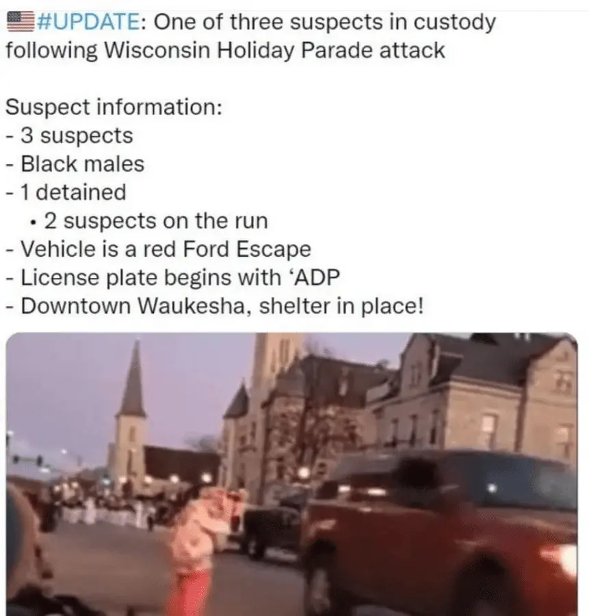 Next question: Were they BLM-types purposely running over a Christmas parade as retribution for the Rittenhouse verdict, or simply thugs trying to evade the police?