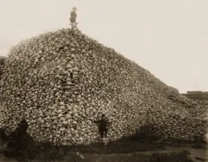 Yup, those are bison skulls. They hunted Bison into near extiction to try to starve out the Plains Indians and drive them onto Reservations (Beta-version concentration camps.)