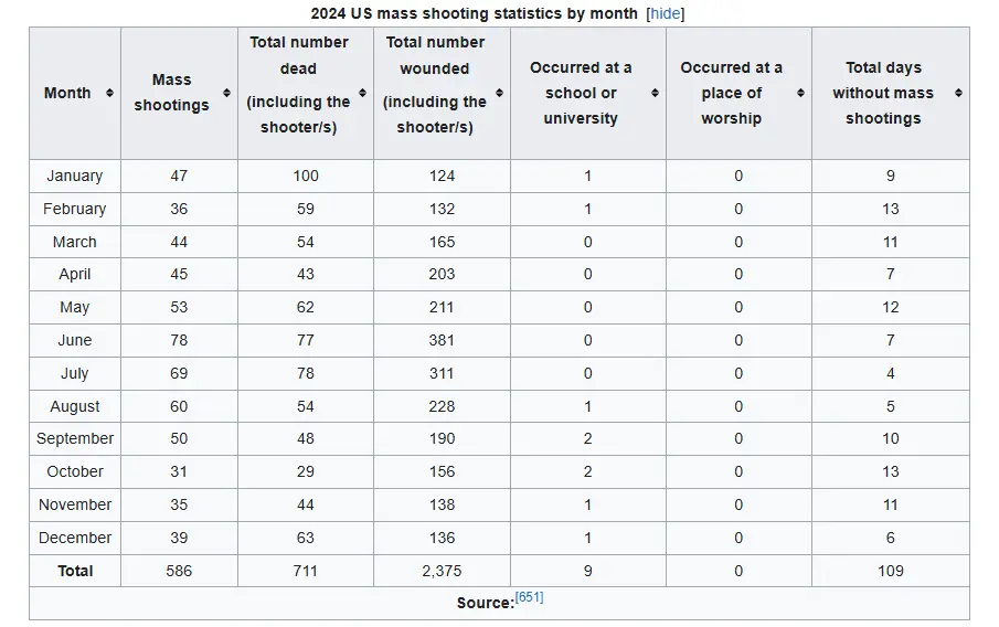8 people murdered in mass public shootings in the U.S. in 2024......10 murdered in Sweden in one mass public shooting....