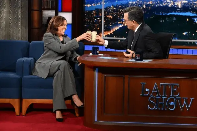 Vice President Kamala Harris returned to CBS’ “The Late Show With Stephen Colbert” on Tuesday night, marking her first late-night appearance since accepting the Democratic presidential nomination in August