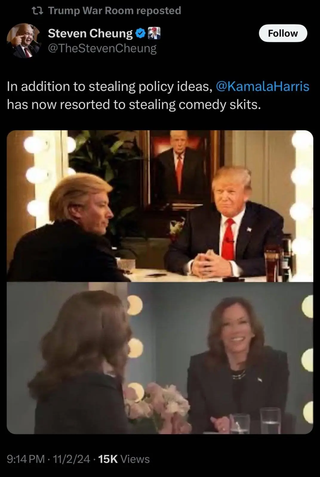 Yea….she literally copied President Trump’s SNL skit…It was damn BRILLIANT!